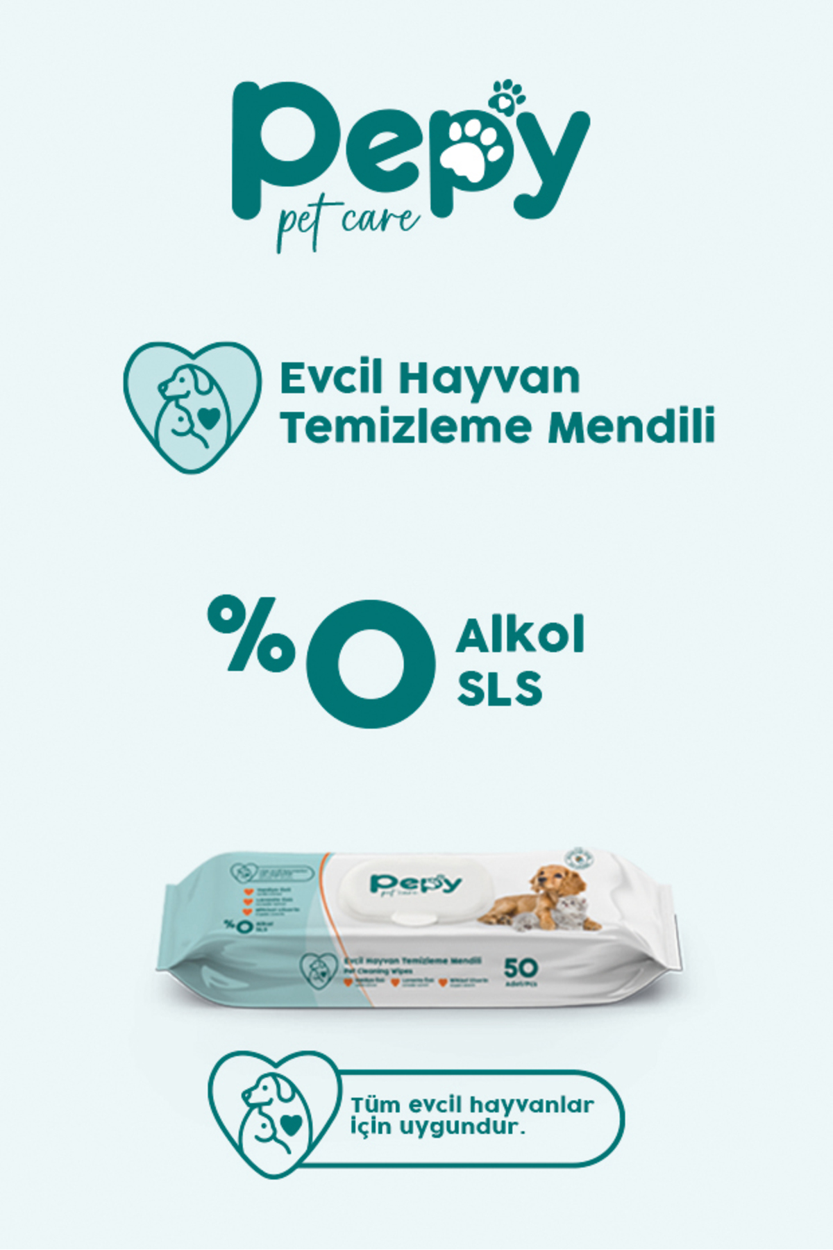 Pepy Kedi Ve Köpek Kullanımına Uygun Evcil Hayvan Temizleme Mendili 50'li x12 Adet (2512032)