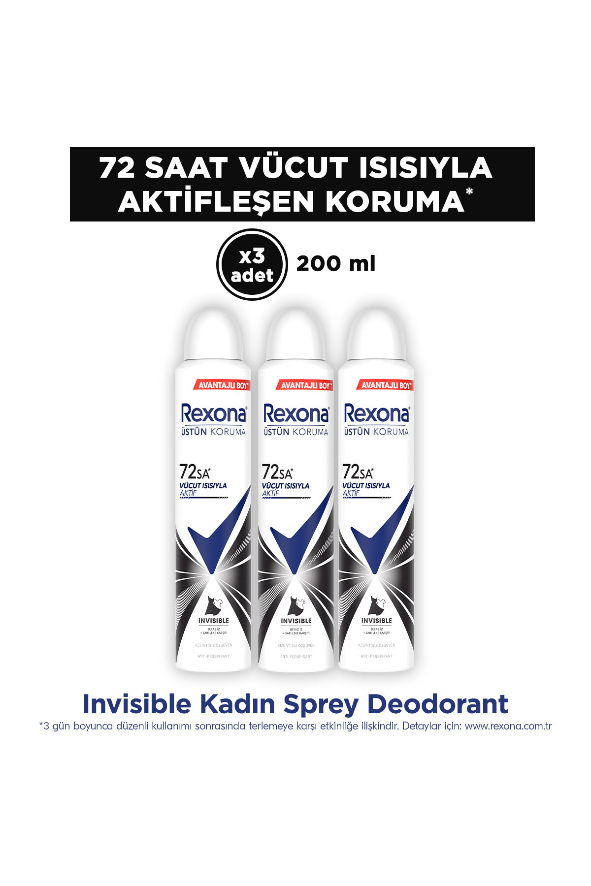 Rexona Kadın Sprey Deodorant Invisible On Black White Clothes Avantajlı Boy 200 ml X3 Adet (1149314)